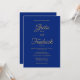 Este elegante convite de casamento é eterno, seu design é simples e minimalista. O design apresenta detalhes personalizáveis do convite de casamento na tipografia do roteiro clássico de ouro; em um fundo azul real sempre elegante e sofisticado.
