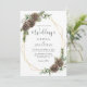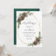 Com a elegante escrita moderna, este convite para o casamento, com tema de inverno, apresenta uma estrutura geométrica dourada decorada com verde-aquarela, cones de pinho e galhos verdes do inverno, acentuados com groselhas de neve. No verso está uma textura verde de aquarela. Localize as placas rsvp e de gabinete correspondentes, bem como outros produtos correspondentes, na coleção. Envie-me uma mensagem através do Zazzle Chat se você precisar de ajustes de design ou mais produtos correspondentes.