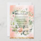 Que belo design de pinks macios, verdes em flores de aquarela. A coroa de flores é perfeita para este fundo. O minúsculo sotaque dourado no fundo do convite termina com classe e sofisticação. Esta será uma maneira tão adorável de convidar a sua família e amigos para o seu dia especial.