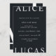 Nossa coleção do "Ultra Modern Wedding" apresenta monogramas de tamanho excessivo em uma fonte serif que transbordam no topo e no fundo em conjunto com um roteiro moderno para todas as outras informações. Você pode escolher entre diferentes cores de fundo e fonte e personalizar facilmente os produtos. Verifique em nossa loja mais itens desta coleção.