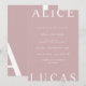 Nossa coleção do "Ultra Modern Wedding" apresenta monogramas de tamanho excessivo em uma fonte serif que transbordam no topo e no fundo em conjunto com um roteiro moderno para todas as outras informações. Você pode escolher entre diferentes cores de fundo e fonte e personalizar facilmente os produtos. Verifique em nossa loja mais itens desta coleção.