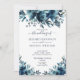 Este romântico, rústico convite para casamentos de aquarelas florais apresenta uma queda floral, com texto de convite no estilo moderno rústico elegante com tipografia escrita à mão. A parte de trás do convite apresenta uma textura azul marinho decorada com florais azuis. Copyright Elegant Invites, todos os direitos reservados.