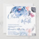 Convites Casamento de Script Floral Floral Azul Pêssego de
