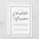Um convite de casamento para a tipografia branca e negra, simples escrito à mão, com uma fronteira balnear caprichosa. Disponível em impressão, como download digital ou ambos.