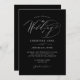 Convide seus convidados de casamento em estilo com este convite personalizado de casamento branco em preto minimalista com um simples fundo preto com tipografia elegante de roteiro branco para personalizar com seus detalhes de casamento. Os melhores votos para o seu casamento e casamento! Desenhada por Susan Coffey.