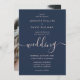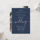 Convide a sua família e amigos para o seu marinho moderno e blush festa de casamento com estes minimalistas, mas elegantes, azuis e azuis convites de casamento de fotos com uma letra moderna de escrita. Itens correspondentes disponíveis.