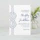 Este moderno convite de casamento costeiro de na moda apresenta um monograma de ampersand com os nomes da noiva e do noivo em letra de escrita de moda, com um nó náutico no lado esquerdo, num esquema clássico de cor branca e azul marinho. Encontre produtos correspondentes na coleção e sinta-se à vontade para entrar em contato comigo através do Zazzle Chat para obter produtos adicionais, outras vias coloridas ou ajustes de design.