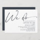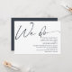 Simples script moderno "nós fazemos" com cinzas azuis escuras sólidas e flor silvestre em um pote em branco no verso do convite. Envie-me uma mensagem se precisar de assistência ou se tiver algum pedido especial.