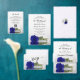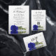 Este belo convite para o casamento apresenta uma bela fotografia de um solteiro royal, de cor azul vívida e longo rosa, gravado ao seu lado, refletindo numa piscina de água com ondas e ondulações. O design apresenta um roteiro de caligrafia rico com um fazer de cauda longa e encaracolada, moderno e clássico. Uma maneira elegante, sofisticada e chique de convidar seus amigos e família para compartilhar seu dia especial. A parte traseira do cartão é uma cor azul de cobalto marmoreada com um padrão de pelúcia.