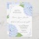 Convites Casamento de Script Watercolor Blue Hydrangea