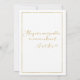 Simples mas elegante convite de casamento preto e branco com as palavras "Dia de Casamento" em um falso roteiro de ouro. O verso da carta apresenta uma escritura falsa em ouro sobre o amor tirada do livro The Song of Songs (Canção de Salomão) que diz: "Muitas águas não podem desabafar o amor nem os rios podem afogá-lo." Um belo sentimento para o dia mais importante da sua vida!