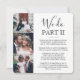 Convide a família e amigos para testemunhar que você diz "eu faço" novamente com um convite de casamento elegante de sequelas de colagem de 4 fotos. Toda a formulação é simples de personalizar, incluindo a citação que diz "nós fazemos parte II." Personalize-o para qualquer tipo de celebração de casamentos, como uma cerimônia de renovação de votos, uma recepção de aniversário de 1rua, um partido de elopeamento poste, hora de cocktail ou um grupo de janto. Personalize com os detalhes de sua escolha, incluindo data do casamento, rsvp, código de vestimenta, site, etc. (DICA DE IMAGEM: Uma maneira fácil de centralizar uma foto exatamente como você deseja é recortá-la antes de carregá-la no site do Zazzle.) O moderno minimalista design a preto e branco apresenta quatro imagens do novo casal, a caligrafia manuscrita de tendências e a tipografia no estilo de máquina de escrever. Se fugiu ou não devido à pandemia cobiçada ou se desceu para um menor, mais íntimo minimônio ou microcasamento, o feliz para sempre depois da festa ainda pode começar. Parabéns para a noiva e o noivo!