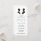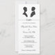 Convite de casamento preto e branco elegante com silhuetas vintage de um homem e uma mulher frente a frente um ao outro. A design também inclui um florescimento de caligrafia na moda.