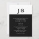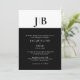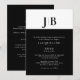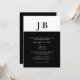Convite de casamento preto e branco. Simplicidade. Detalhes no verso. Moderno.