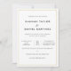 Este simples e elegante cartão de convite para casamento tem um eterno minimalista e design . A configuração padrão para a cor de texto na parte frontal é preta. A borda na frente é uma cor chamada 'ouro velho'. Você pode alterar a cor desta linha no modo de edição. Tomem nota, no entanto, de que, se optarem por manter o símbolo e o símbolo nas costas entre os vossos nomes, esse símbolo e essa cor não podem ser alterados, e nós escolhemos o mesmo tom de "ouro antigo" para isso. No nosso compro, oferecemos também uma versão semelhante deste cartão sem fronteiras. A base na frente da placa está definida para ser simplesmente a cor do papel, como escolhemos usar uma base clara com o texto de amostra. Não escolhemos nenhuma cor. No verso, porém, há um tom de cinza escura escolhido para a base. Você pode adicionar uma cor de sua escolha à frente como base, seja ela branca ou outra coisa, e/ou mudar a cor de base no verso, de acordo com o seu gosto. Você pode querer fazer com que eles tenham a mesma cor de sua escolha, talvez branco ou algo parecido ou outro matiz totalmente diferente. Ou você pode preferir um tom base diferente para cada lado. Você pode digitar um número de cor hexadecimal específico ou simplesmente escolher uma cor pela visão no modo de edição. Embora não seja possível alterar a cor do símbolo de e-mail no verso, você pode optar por removê-lo totalmente - você pode, por exemplo, optar por excluir todo o texto no verso a favor de um vazio de volta ou de uma mensagem de sua escolha. Além do suporte, você pode alterar o estilo, o tamanho ou a fonte do texto, bem como excluir ou alterar qualquer texto de acordo com as suas necessidades. Vocês vão notar que esta modelo usa o inglês americano, daí a ortografia da 'honra', que é claro que pode ser facilmente alterada. Use as ferramentas de design para personalizar este modelo e torná-lo exclusivamente seu! E por favor, confira o nosso simples e elegante guarde a data e os cartões de acesso.