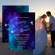 Um céu noturno romântico cheio de estrelas brilhantes é o pano de fundo para este Convite de Casamento. Concebidos com tons claros e escuros de azul, turquesa e pontilhados com estrelas espumantes brancas. Para personalizar, basta inserir seus detalhes no nosso modelo, substituindo o texto de exemplo. Certifique-se de ver as peças correspondentes a esta Coleção de Convite de Casamento Star Light - Blue Sky. Aproveite!