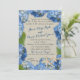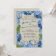 Linda hidrania azul sobre burlap e decorada com dois convites para casamento de design estrelado para seu tema de praia ou casamento de destino. Personalize o texto como preferido.