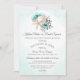 Flores impermeáveis e folhagem delicada enfeitam um dólar de areia suave e estrelas-do-mar. Convite para casamento Elegante na praia com uma redação totalmente editável e faixas náuticas no verso.