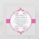 Quadro rosa ornamentado em uma Cinza e fundo branco riscado após convite de casamento. Personalize com suas próprias informações. Estas são perfeitas para a noiva em um orçamento, porque as informações de rsvp estão incluídas no verso. Eles também são excelentes se você teve um casamento particular, mas quer celebrar com amigos e familiares em um lugar diferente. Se quiser um rsvp separado, envie-me um e-mail para shutterbug600@yahoo.com. Se você precisar mover o texto ou alterar o tamanho, a fonte ou a cor do texto, clique em Personalizá-lo.