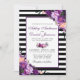 Convites Casamento de Stripes Negras Florais Violetas Roxas