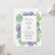 Convite de casamento com aquarelas suculentas em tons de verde e roxo ao redor de uma estrutura de ouro. Personalize com suas informações ou clique em "Clique para personalizar mais" para editar estilos de fonte, tamanho e cores.