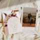 Este convite para o casamento apresenta arcos boêmicos, florais de tons de terra de aquarela e uma elegante letra escrita à mão com um sotaque de terracota divertido. Este convite de casamento é o complemento perfeito para a sua celebração de boho ou outono. Adicione facilmente uma foto à parte de trás para um toque pessoal.