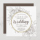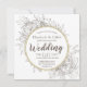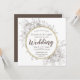 Este design apresenta peonias e folhagem num estilo de desenho de linha moderno e mínimo que lembra o formato floral. Os círculos Dourados destacam o texto correspondente que inclui sorifes clássicos e uma tipografia cursiva manuscrita. "Casamento" é mostrado no centro. O verso do chá de panela tem a "Recepção após a cerimônia". Há também muito espaço no verso para adicionar detalhes ou texto adicionais.