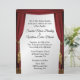 Cinema vermelho escuro ou cortinas de palco para seus convites de casamento. O nome da noiva e noiva na frente é como os nomes dos atores estrelantes do evento anunciado. Também adicione a data do casamento. Ao fazer seus convites, por favor, verifique três vezes sua ortografia e datas.