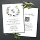 Olive Branches Monograma Wreath Símbolo de Amor Código QR RSVP Convite de Casamento... A frente do nosso convite para o casamento da coroa monográfica apresenta as iniciais da noiva e do noivo sobrepostas em uma serra pastel dentro de uma coroa elegante de galhos de oliveiras. Logo abaixo está seu texto de convite personalizado em serif de carvão e sans serif typografia em um fundo branco nítido. A parte traseira do convite exibe o código QR do seu site de casamento, bem como o URL do site, permitindo que seus convidados RSVP online sejam facilmente acessados e visualizem todos os detalhes normalmente enviados em um pacote de casamento. O exemplo de código QR e todo texto de exemplo (além dos elementos de caligrafia) podem ser facilmente revisados com suas próprias informações sobre o modelo de personalização.