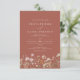 Celebre o seu casamento com este convite de casamento do Jardim de Flor Selvagem de Terracotta. Apresentando um fundo teracotta quente, flores silvestres pintadas à mão e elegante tipografia moderna, esta design combina encanto bêmico rústico com sofisticação da terra. Perfeito para casamentos outono, cerimônias do deserto, ou casais que amam papelaria natural, artística. Personalize com seus detalhes para manter o eterno.