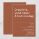 Excelente, boa música e dança ruim. Design moderna e engraçada com tipografia moderna em terracotta queimou fundo laranja. O texto pode ser facilmente personalizado para um único design único para o seu dia especial.