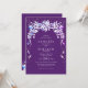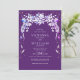Casamento de cascata floral em cascata de garland roxa. Convite. Uma bela garland branca em cascata adorava este convite de casamento com o confete de ouro.