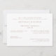Convite para casamento branco moderno. Parentes noivos listados. Fonte mista. Texto Dourado rosa.