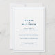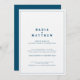 Convite de casamento vertical, azul e branco, marinho gráfico moderno muito simples. Perfeito para um casamento simples e moderno. Edite este convite com seus próprios nomes e detalhes do casamento. Outros itens correspondentes disponíveis. Projetado por www.mylittleedenweddings.com