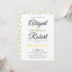 Tipografia escrita à mão, flores amarelas, simples convite para o casamento floral. Mostra seus nomes em uma escrita cursiva tipografia de estilo manuscrito e duas pequenas flores amarelas com folhas verdes em ambos os lados da seringa. O fundo inclui um padrão floral.