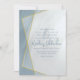 Este convite de casamento simples e moderno em estilo geométrico apresenta um tema de cor azul empoeirado com elementos caligráficos, sotaques assimétricos de quadro de ouro e aparência de textura de mármore - por katz_d_zynes
