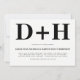 Sinais pretos e brancos ousados convite para casamento de tipografia. O verso inclui um padrão geométrico.