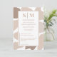Apresentando um design de convite para casamento contemporâneo e elegante em tons populares de café marrom. Este convite apresenta formas geométricas no fundo e um retângulo delimitado contendo detalhes essenciais do casamento da noiva e do noivo. Uma escolha perfeita para casais que buscam uma estética minimalista e moderna para seu dia especial.