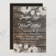 Casamento de fundo de madeira ruidoso de tulipas brancas e prateadas, Esta cinza branca e prateada é um design único com flores de tulipas brancas suspensas no topo e no fundo. Ao fundo, um fundo de madeira rústico, este design pode ser personalizado com seu próprio texto.