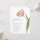 Um convite de casamento moderno e minimalista apresenta um simples design com um solteiro com um sistema de tulipas de cor de pêssego mole e uma fotografia moderna de cinzas escuras para personalizar seus detalhes importantes como nomes, data do casamento, hora e local.