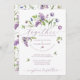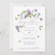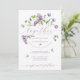 Celebre o amor na floração! Este bonito convite para o casamento contém flores primavera a aquarela incluindo tulipas, jacinto de uva, lilases e trevo, colocadas contra um pano de fundo branco nítido. Reforçados por um roteiro elegante e um tipo clássico, as roxas vibrantes e verdes frescos artesanato uma cena encantadora, perfeita para celebrar o dia grande do casal feliz. Desfrute de um padrão primavera opcional que floresce sem problemas no verso ou substitua-o por uma foto da sua escolha.