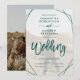 Um convite de casamento moderno e simples com duas fotos, com uma cobertura branca, um quadro verde esmeralda de borda e uma letra elegante, adicione 2 de sua foto favorita. Um casamento simples e elegante.