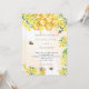 Decorados com espécimes do gênero Bombus, melando mel e favos de mel com flores amarelas, flores e um pote de mel. Com o texto: Pretende-se Abelha, escrita com laranja, quase invisível como uma marca d'água. Personalize e adicione seus nomes e detalhes do casamento. Letras pretas e ouros coloridas.