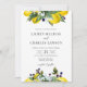 Convite para casamento do tema Lemon. Apresenta ilustrações em aquarelas de limões, folhagem, amoras-amoras e flores de limão cor-de-rosa. Este convite de limão-boho é perfeito para chás de casamento de verão. Personalize adicionando os detalhes do evento.