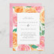 Um bonito e colorido convite para o casamento floral, com um quadro de rosas de cor d'água em cor rosa e laranja, e folhas verdes - perfeito para um casamento no sul do verão. O reverso apresenta uma lavagem de aquarela cor-de-rosa que pode ser excluída.