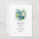Convite de casamento floral azul e verde. Ideal para um casamento de verão. O código QR no verso direciona para o seu local de casamento onde o pessoas pode aprender mais e rsvp
