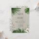 Anuncie o seu grande dia com este elegante cartão de Salve a Data de verdura tropical. Com folhas luxuriantes de palmeira e monstera com sotaques florais suaves, este design é perfeito para um casamento de destino ou um tema botânico moderno. Personalize facilmente com seus nomes, data e local para torná-lo verdadeiramente seu.