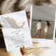 Este convite para casamento no tema da viagem apresenta um mapa vermelho do México e uma foto ao fundo. Altere facilmente as cores e mova o coração para realçar seu destino. Edite o texto *maioria* para atender às suas necessidades e adicione sua foto e site na parte traseira para um toque pessoal.