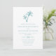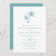 Este simples convite para o casamento de praia tropical apresenta duas palmeiras no topo, com texto elegante clássico, num esquema de cor azul-de-vidro branco e marinho, com a coordenação do azul-de-vidro-marinho no verso.