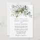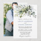 O Cartão de Convite para Casamento de Cores Biológicas Elegantes Modernos inclui folhas de eucalipto, folhagem botânica verde, folhas azuis empoeiradas e outros belos lençóis botânicos. Foto de volta.